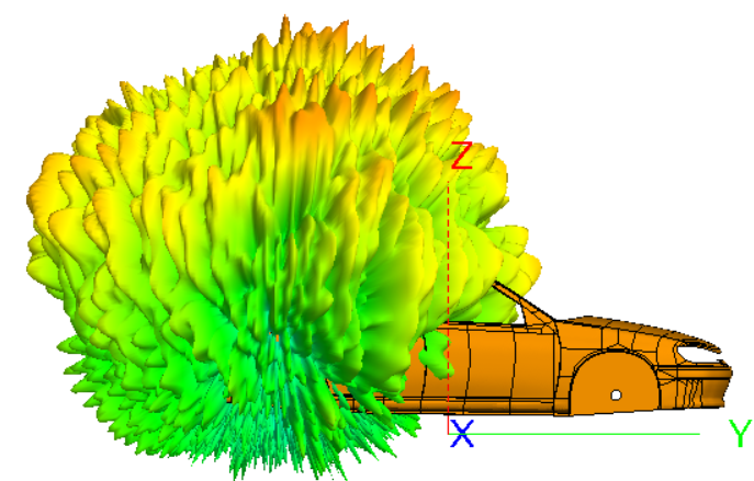 FEKO 分析天线安装在车体的 3D 方向图, WinProp 分析城市场景下,车载天线接收功率