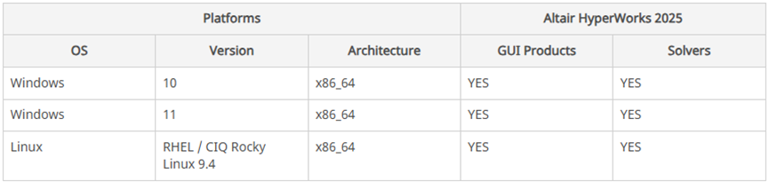 Altair商务经理在为客户申请许可文件之前,将和客户确认最终许可服务器的MAC地址。下面介绍如何获取该信息,分Windows和Linux两种系统。HyperWorks v2025版本配套的许可管理器支持下列系统平台: