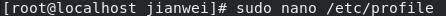 以下是操作示例,在客户端电脑上(以下截图,客户端和服务器端为同一台电脑),首先编辑/etc/profile文件。