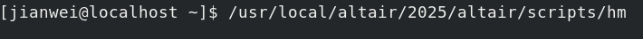 执行启动脚本时,请不要在软件安装目录,可以在个人目录(cd ~)下启动。如/usr/local/altair/2025/altair/scripts/hm。