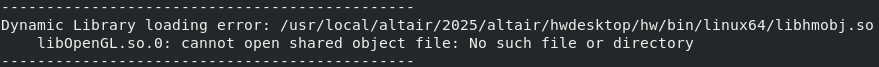 运行HyperMesh启动脚本时,提示cannot open shared object file: No such file or directory,或者Dynamic Library loading error,常见的错误提示如下图。